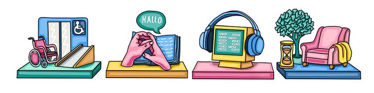 - räumliche und bauliche Barrierefreiheit, zum Beispiel durch Rampen oder automatische Tür-Öffner für Rollstuhl-Nutzer*innen