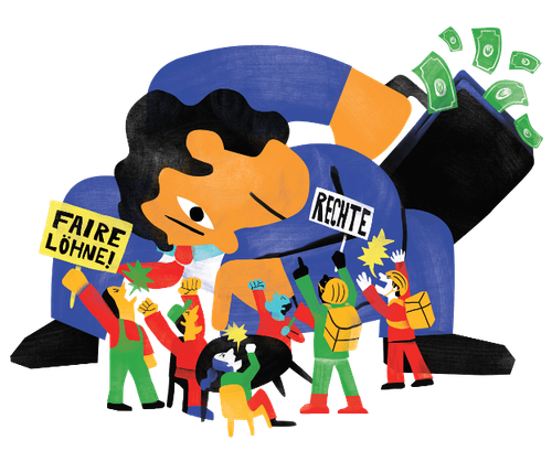 Bestes Beispiel ist wahrscheinlich die Gig-Economy. Sie toleriert oft prekäre Arbeitsbedingungen, zahlt gern unregelmäßig oder manchmal gar nicht und dumpt Preise. Viele Menschen dort verdienen unter dem Existenzminimum. Häufig sind Gig-Worker*innen Soloselbstständige ohne Absicherung – gemeinsam aktiv zu werden, ist also umso schwieriger. Schwangerschaft? Krankheit? Armbruch? Dein Problem.